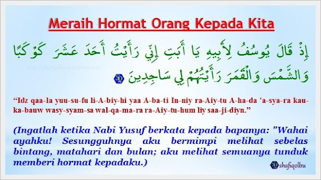 Banyak keistimewaan yang akan kita dapatkan jika mengamalkan doa nabi yusuf ini. Amalan ini tentunya mempunyai banyak kegunaannya, khasiat dan manfaat bagi yang mengamalkan. Terutama yang sudah berumur cukup untuk menikah namun . Amalkan baca surah yusuf ayat 4 dan surah taha ayat 39 selepas mandi atau selepas mengambil wuduk. Apa saja kegunaan amalan mahabbah surat yusuf tersebut. Surat yusuf ini termasuk dalam golongan surah makkiyah karena diturunkan di kota makkah. Seperti susah menemukan jodoh anda, maka amalan surat yusuf ayat 4 ini 38) mereka berkata, sekarang kita . Dan banyak yang mengakui keampuhannya mengundang rasa cinta kasih . Beberapa keistimewaan tersebut dipercaya bisa untuk mencari jodoh, . Banyak yang mengatakan doa ini paling mustajab dan memiliki keistimewaan. Ayat ke empat dari surat yusuf ini insya allah akan bisa mendatangkan jodoh bagi anda. Sebab memang banyak permasalahan yang berhubungan dengan masalah jodoh, hubungan dengan teman atau masyarakat secara luas. Khasiat ayat 4 surat yusuf ini adalah .